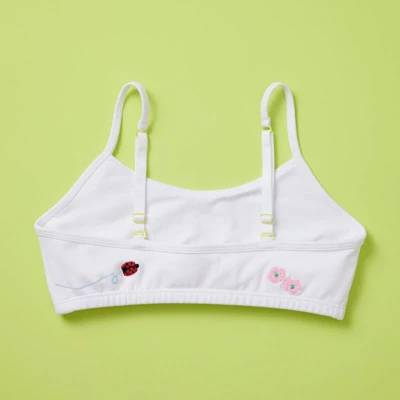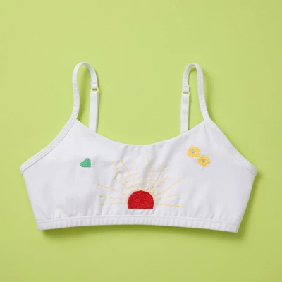 Our Brand New, Everyday Embroidered Cotton Bra for Girls of All Ages.Made with one-of-a-kind, beautiful hand embroidery. Inspired by happy girls, whimsical sunny days, and the excitement of spring! What better way to put a smile on your face every morning than an extra bit of color, and a big boost of confidence. Every Yellowberry bra, it ensures full coverage and support. The fabric is plush, and extra, extra soft cotton with just a hint of spandex for great recovery. The design is classic, and gives all day comfort for girls of all ages. As with every product we design, we want deliver the best possible bra experience, as well as offer one the most comfortable bras in your daughter’s top drawer.