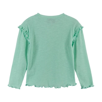 Keep her comfortable all day long with our Girl’s Smiley Long Sleeve Tee. Our kids tees are made of super soft cotton, and this tee features a cute smiley face graphic and ruffle sleeve to add some fun to her wardrobe!