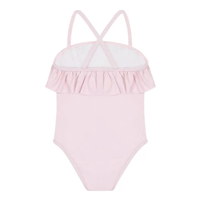 This modern, trendy print will have her feeling cool & confident at the pool while also protecting her from the sun all day long! Bonus ruffles for our girly-girls!