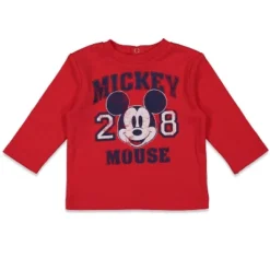Disney Mickey Mouse Baby Pants Pullover T-Shirt And Bodysuit 4 Piece Layette Set Newborn To Infant