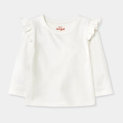 Whether you’re looking for a gift or refreshing your baby’s wardrobe, the Sweater Romper with Cable T-Shirt Set from Cat & Jack™ will make a cute choice for your needs. This baby outfit set includes a white long-sleeve T-shirt with ruffles along the shoulders and a contrasting sweater romper with cable-knit detailing for cozy style. The crotch snaps make dressing and changing easier and the soft fabric helps keep your little one comfortable.