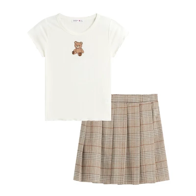 The Beautees Girls’ 2pc Top and Skirt set is an easy styling choice for her. The set comes with knit baby tee comes with an embroidered bear and matching plaid pleated skirt. This set is a cute & comfy outfit to put on again and again! Beautees is a tween dream … offering fashion, trend, value, and quality to the next generation of fashionistas. Our styles are designed to instill self-confidence at school, home, or on the playground. Our mission is for every young girl to feel beau-tee-ful in Beautees!