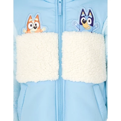 - Officially licensed Bluey Bingo toddler girls cute and stylish hooded puffer jacket, perfect for keeping warm during winter and adventure-ready no matter the weather