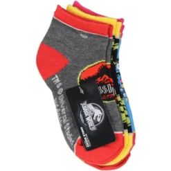 Jurassic Park Socks Kids T-Rex Dinosaur World Ankle No Show Socks – 4 Pack Multicoloured