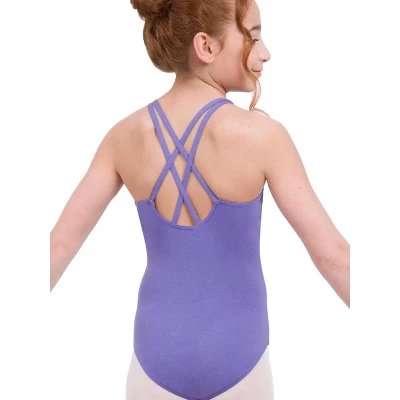 Shine a spotlight on the Double Strap Camisole Leotard. Made of a cotton and Lycra® spandex blend that is soft and resilient. Full front lining for modesty. Features a scoop neck and double criss-crossed back straps. Your rising dancer is bound to garner attention in this leo.
