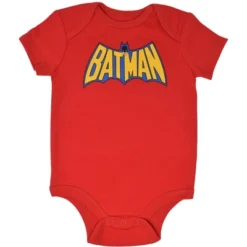 Dress up your darling in superhero-inspired style at home or on the go with the pieces from this 3-Pack Batman Bodysuit Set. This three-pack of short-sleeve bodysuits includes one in gray, one in yellow and one in black, each featuring Batman’s face and logo. The soft fabric construction offers comfort throughout their day and night. Designed with lap shoulders and crotch snaps for easy changing and dressing, the pieces in this bodysuit set allow easy pairing with a range of bottoms in their wardrobe to create a variety of looks.