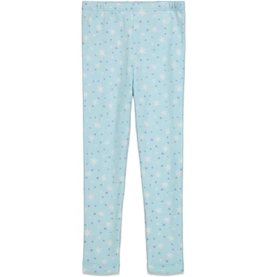 - Ruffle peplum top with soft hand screen print artwork featuring Elsa with glitter snowflakes and the phrase “I am fearless,” plus sky blue leggings with an all-over snowflake print.