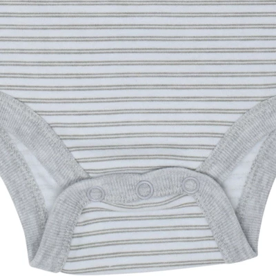 Dress your little one in this adorable Mickey Mouse outfit and get ready for a day filled with Disney magic. This 4-piece set features classic artwork of Mickey and includes a stylish gray and white striped bodysuit, gray pants, a matching striped bib, and a soft hat with 3D Mickey Mouse ears. Made from material that is soft on your baby’s skin, and with an easy-to-dress design, this cute Mickey Mouse set will keep your little one comfortable for all day play.