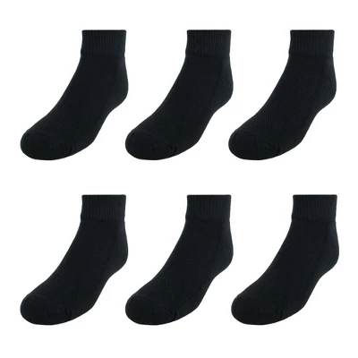 Keep him dry and comfortable in these boys’ breathable ankle socks featuring ultrasoft and comfortable cotton, classic colors, and ventilated mesh for optimal comfort from the classroom to the baseball field. These socks are durable along with featuring cushioning in the sole to absorb shock for added comfort. Reinforced yarn in the heel and toe adds durability to these superior fitting socks.