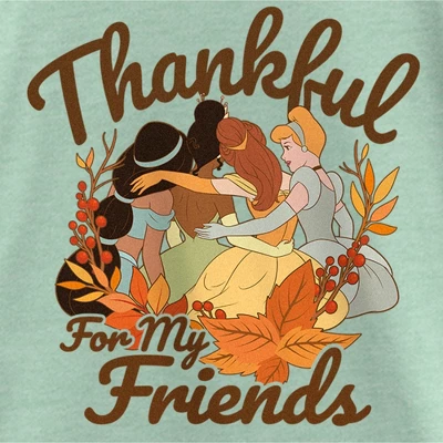 - Strut your stuff with this stylish new girls’ t-shirt that is perfect for fall! Featuring Jasmine, Tiana, Belle, and Cinderella hugging each other framed by autumn leaves and the phrase: “Thankful for my Friends” across the front.
