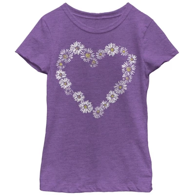 Love abounds with the flower-power-filled style of the Daisy Heart Purple T-Shirt! This cute purple flower shirt features a heart made of yellow and white daisies printed in front for a double dose of adorable.