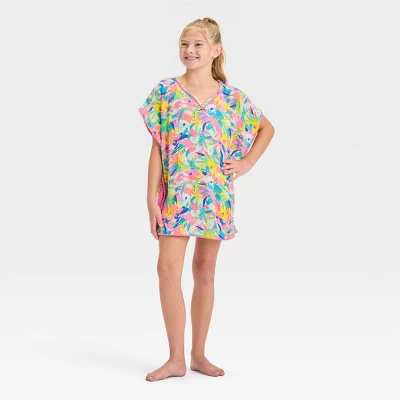 Your kiddo will kick back in style whether playing at the beach or relaxing poolside with this Floral Cover-Up Top from Cat & Jack™. This sleeveless cover-up top features floral print with pom-pom detailing on the edges and a turnback hem for a beautiful look they’ll love to show off. The lightweight fabric helps keep them comfortable, while the opaque lining provides extra protection against harsh sun rays. Falling below-hip length, they can pair it with flip-flops, shades and a hat for a fun day under the sun.
