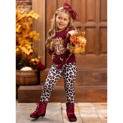 Fall is in the air and now in your little girl’s cutest legging set yet! The trendy knot-hem top and vibrant leopard print makes those autumn colors pop.