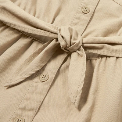 Bring comfort to your kid’s day without sacrificing style during school adventures with this Short-Sleeve Uniform Safari Dress from Cat & Jack™. Falling at the knee and crafted from a lightweight fabric, this short-sleeve safari dress brings cool comfort to their day, and buttons down the front for easy dressing. It features a classic collared neckline, patch pockets and front placket for a dressier look, along with a tie-belt closure at the waist for a flattering fit. Your kiddo can pair this safari dress with sandals or sneakers to complete their look.
