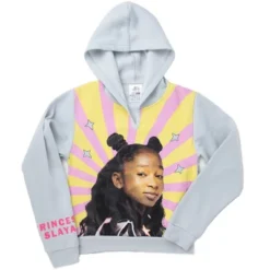 From having fun outdoors to reading a book indoors, your child will love adding fun and magic to their day in this That Girl Lay Lay “Princess Slaya” Hoodie. Made from a soft fabric blend, this hooded sweatshirt is designed with banded cuffs and hem to offer them a snug fit. Designed with a V-neckline and falling below the waist, it features a screen print featuring That Girl Lay Lay on a yellow and pink rainbow background on the front, with “Princess Slaya” written in red on the right sleeve. They’ll love layering it over a variety of tees or dresses for cozy comfort during cool weather.