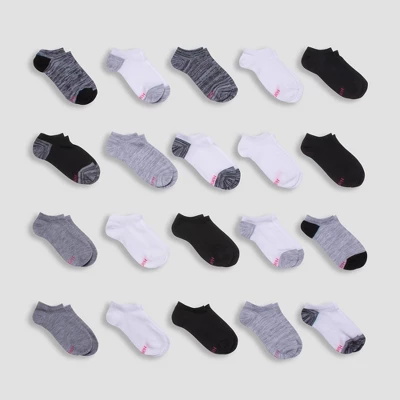 The Hanes Girls’ No Show Socks come in a super value pack of 20 pairs. This convenient large pack features a mix of colors and patterns. The No Show design hugs the heel and stays in place within her shoe. Made with spandex for a flexible, comfortable fit. Perfect for play all day.