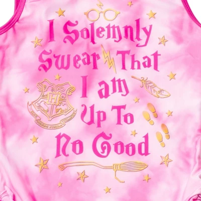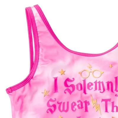 Hop on your broom and fly off to Hogwarts School of Witchcraft and Wizardry to enter the magical world of Harry Potter! Wearing this Harry Potter One Piece Bathing Suit, approach the Sorting Hat to determine which House you will be in: brave Gryffindor, wise Ravenclaw, cunning Slytherin or kind Hufflepuff. Learn spells, potions, and general magic from professors like Severus Snape and Albus Dumbledore and go on adventures with Harry Potter, Hermione Granger, Ron Weasley, Draco Malfoy, Neville Longbottom, Luna Lovegood and their friends in this cute and stylish one piece swimming suit.