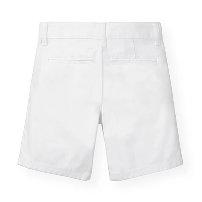Our modern fit chino short will be the one your boy reaches for every day, on special occasions and weekend play dates alike. Features soft 100% organic cotton twill with a carbon-brushed finish and a hint of stretch, faux horn button, side pockets, back welt pockets, and an adjustable waistband for ultimate comfort and superior fit. These are sure to be worn, loved, and passed down again and again!