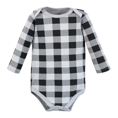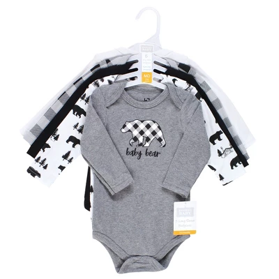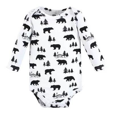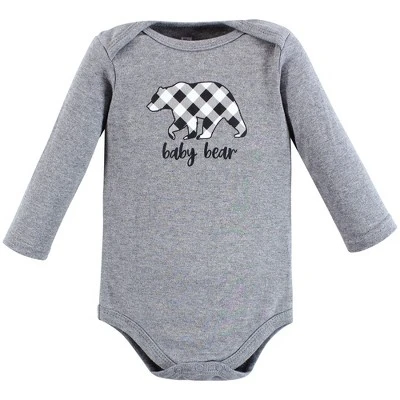 Hudson Baby Infant Boy Cotton Long-Sleeve Bodysuits, Baby Bear Gray Black 5-Pack