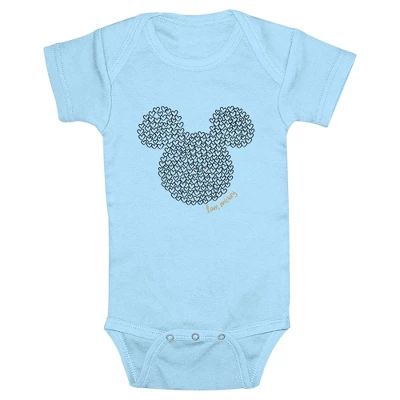- The smallest family members are also the most stylish with this new onesie bodysuit that is perfect for crawling around and indoor play! Featuring the iconic Mickey Mouse logo filled with a cute heart pattern.