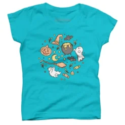 Girl’s Design By Humans Pugkin Pumpin Halloween By Trantanphat95 T-Shirt