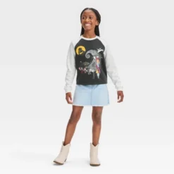 Girls' The Nightmare Before Christmas Raglan Pullover Sweatshirt – Black
