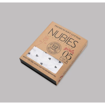 Nubies come in a convenient pack of 5, with recyclable packaging and are made from 100% cotton. The best part is, you can feel good about making a sustainable choice that will support healthy hygiene habits. Our super soft cotton undies are easy, comfy & fit true to size with a lightweight, breathable, high quality cotton fabric.