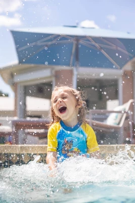 - Quick drying children’s swim shirt and swim trunks with cute and fun character designs; durable summer essentials that your active little boy can’t wait to wear in the water at the beach or pool