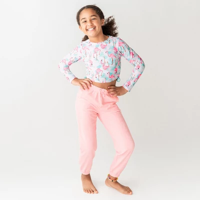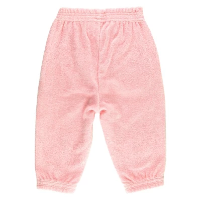 Lounge in style! These RuffleButts Pink Terry Knit Ruffle Jogger Pants are the perfect addition to your girl’s summer style! From lounging around the house to heading to the park or covering up for a trip to the boardwalk, the pairing possibilities of these pants are endless. With comfortable terry cotton, they are great for any occasion this summer.