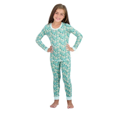 - PRINT: Our 2-piece jersey floral snug-fit toddler girls pajama sets, the perfect blend of undeniable style and snuggle-worthy comfort. The set features a vibrant turquoise and white floral print that adds a cool summery and delicate touch to the set. The colors give the set a sense of coziness while the floral print emits refreshing summery vibes, making it the perfect set for your little princess.