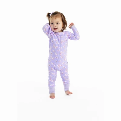 She’ll flutter into blissful sleep when wearing this baby-soft jersey sleepsuit. With just the right amount of stretch to keep her comfortable all night long. This soft lilac outfit features an all-over floral butterfly print, a full-length zipper for easy changing, and cozy convertible foot covers for cooler nights. A matching baby buddy will keep her company as she sleeps soundly.
