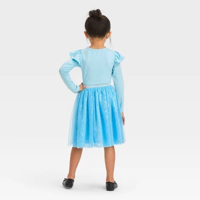 Your little Frozen fan will love dressing up like their favorite princess in this Frozen Elsa Tutu Dress. This long-sleeve tulle dress fashioned in a blue hue features a fun print of Elsa on the bodice with fluttery frill details on the shoulders, a sequin mesh skirt and a silver band on the elastic waist for a touch of shine. The lightweight fabric with soft lining offers comfy wear, while the pullover round neck allows for fuss-free dressing.