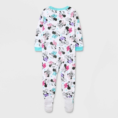 Your toddler will love sleeping and lounging around in this Minnie Mouse Wearable Blanket. This cozy wearable blanket for toddlers features allover print of Minnie Mouse against a white background, and it comes complete with blue cuffs and a crew neckline for fun contrast. Made from 100% cotton fabric with an interlock design, it ensures comfy wear, while the long sleeves and footed ends provide full coverage and the front zip closure offers easy on and off.