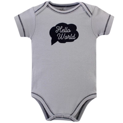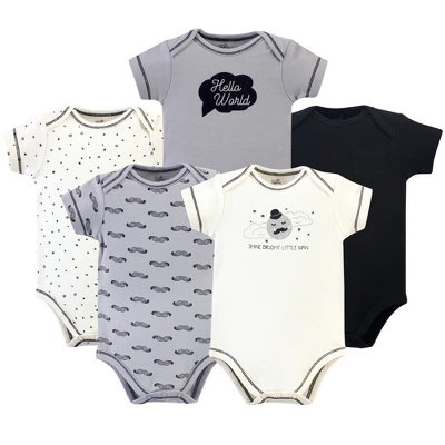 Touched by Nature offers soft organic cotton clothing for the gentlest touch on sensitive and delicate baby skin. Our organic bodysuits feature adorable prints, embroideries, stripes and solids and provide a comfortable base layer that’s great for pairing with pants, shorts, or even wearing under outfits. Our bodysuits are comfortable and cozy for all-day, everyday wear for your little one. Our bodysuits are an essential part of baby’s wardrobe. Touched by Nature Baby Boy Organic Cotton Bodysuits 5pk, Mr. Moon is a great baby essentials set for your little one.