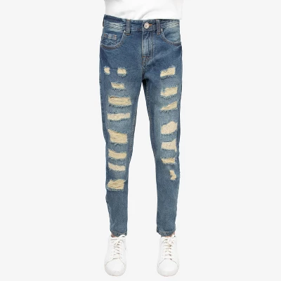 XRAY Pants for kids are available in an array of colors and patterns. They provide the perfect opportunity for expanding your wardrobe and incorporating lightly distressed jeans into your moto motif.They look great with all your concert tees, sports jerseys, hoodies and sneakers or boots.This is Boy’s Heavy Rips Repaired Jeans.Heavy distressed fashion jeans with unique rips style made from comfort stretch fabric for everyday wear.Classic five-pockets styling. Zipper fly with button closure. Heavy distressed rips. Cotton denim.